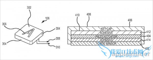从理论上说,这项专利系统运行类似于苹果的压力触控板,但是有更大的规模,每个按键都有一个力传感器包,用于测量下行压力的力传感器集成在键盘键帽下方,同时集成的执行机构产生触觉反馈。