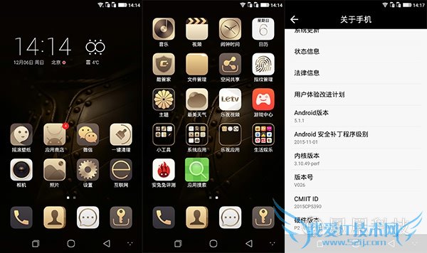 酷派锋尚Max依旧采用了酷派手机熟悉的Cool UI,和以往的撞色风不同,酷派锋尚Max预置的主题是一个以金色为基调的商务风主题,这可能和酷派锋尚Max的机身还有调性相符合,当然视觉效果上也确实比较搭调。而Cool UI 8.0是基于Android 5.1版本的系统深度定制的,在稳定性和流畅性上表现还是没有问题的。