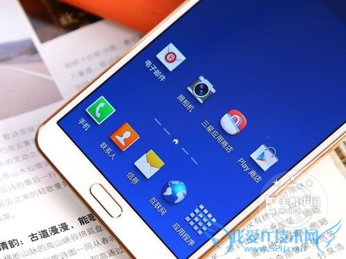 与前代作品一样,三星Note3屏幕下方有一颗标志性的实体Home键,按起来手感和键程适中,反馈力度非常明显,不会有那种按不实的感觉。Home键左右两侧分别是菜单键和返回键,在不触碰的情况下,它们都处于“隐藏”状态,保证了屏幕下方面板的一体感。