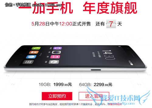 | 16G TD-LTE版 | 一加官网 | 1999.99元 | 开启预约 | 点击直达 |