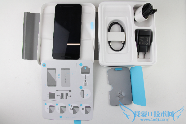 这款手机包装盒采用的是圆角包装,这让笔者想起来曾经的HTC One系列手机,可惜HTC目前已经日薄西山了,手机市场就是这么残酷。好了,回归正题,打开包装盒,里面有Nexus 6P手机、取卡针、电源适配器、双USB-C电源线和用于电脑传输使用的USB-C转标准USB线,另外还有配件说明等。