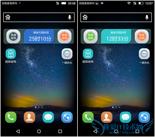 当然,作为一款为待机而生的手机,畅享5在屏幕上摆出了跟续航优化有关几个小部件,可以实时显示“剩余可用时间”,用户还能通过左侧按钮在“普通省电”和“智能省电”之间切换,切换之后,“剩余可用时间”也会随之更改。虽然这种小功能随便一个安卓系统的手机装一个省电的App都能实现,但是这种系统级的插件还是显示出华为的良苦用心。