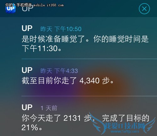另外最新的awbone UP24具有蓝牙传输功能,我完全感觉不到它的存在就可以随时随地的在手机上查看相关数据。例如早晨起床,我只要轻按到清醒模式,手机就会像来短信一样推送一条昨晚的睡眠情况或者每天的运动量提醒。我在下午的时候可以随时看到今天的运动情况,如果仅完成了不到一般的运动量,那么我可以在下午多运动以下。另外,睡眠的智能提醒,可以记录我的睡眠时间,在指定时间提醒我该睡觉了。