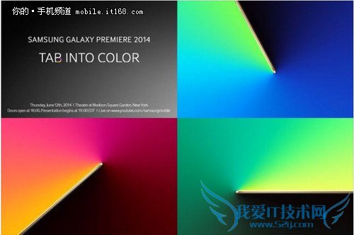 值得一提的是,三星官方日前已经放出“GALAXY Premiere 2014”发布会的邀请函。宣布将于6月12日在美国纽约的麦迪逊广场花园戏院举办新品发布会。虽然三星方面并未透露此次发布会的具体细节,但邀请函上出现的“Tab into Color”标语和照片,则意味着三星可能会公布具有多彩外壳的平板电脑。