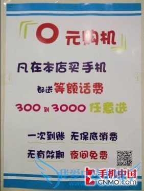 “购机送等额话费”的活动,300元——3000元的等额话费任意选,不限制运营商,一次到账,没有保底消费。