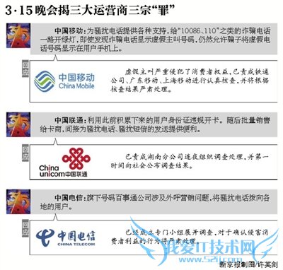 在央视3·15晚会上,科技类企业中三大电信运营商无一幸免,分别涉及诈骗电话和手机实名制等问题。