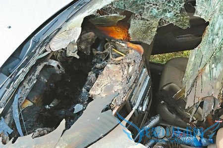 花莲一车主将手机留在车内,因气温过高导致手机电池膨胀爆炸,整辆车烧成废铁。