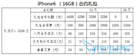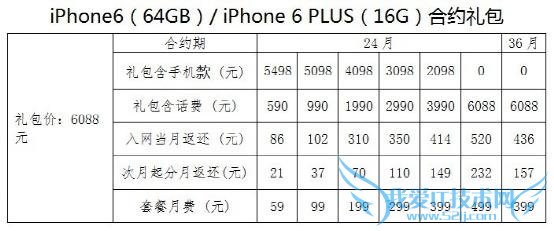 以下为电信版iPhone 6/6 Plus合约套餐计划表: