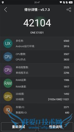 这款处理器在安兔兔下的跑分达到42104分,已经算是中高端的水平,相比采用同平台处理器的一加手机1有了大约5000分的进步。