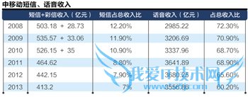 在这些应用的影响下,用户的通话时长逐渐减少。以中国移动为例,2011年至2013年,用户MOU(平均每户每月通话时长)分别为525分钟、512分钟、486分钟,而对应的话音收入则分别为3640亿、3680亿、3556亿,收入递减。