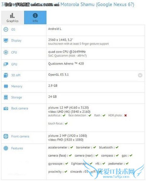 正如Android Silver系列产品的定位更高端一样,这款Moto S的硬件规格在当前确实达到了顶级水准。根据此前GFXBench和安兔兔测试公布的数据显示,Moto S将配有5.2英寸触控屏,所支持的分辨率则达到了2K级别,并且还装载了全新架构的骁龙805四核处理器,拥有Adreno 420图形处理芯片,拥有更出色的性能表现。此外,Moto S还拥有3GB的RAM内存和32GB的存储容量,并支持存储卡扩展。