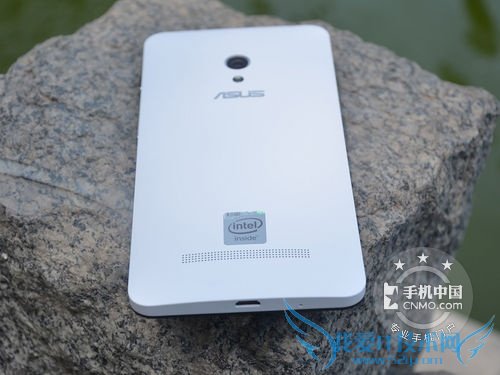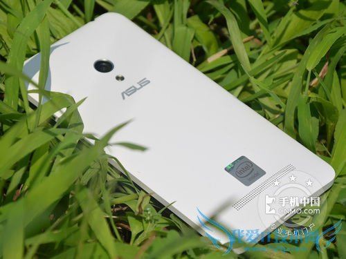 华硕ZenFone 5背面看起来十分简洁,一颗800万像素摄像头安置在中间靠上的位置,LED补光灯则在摄像头下方。其背面底部拥有长条网状的扬声器出孔,可以为用户带来不错的外放音质体验。而在扬声器出孔上则是印有显眼的英特尔LOGO标志,彰显着华硕ZenFone 5的英特尔强芯血统。