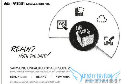 据悉,三星将于9月3日在北京、德国柏林和美国纽约等三地同步举办GALAXY Note 4新品发布会,正式发布这款备受期待的跨界智能旗舰。