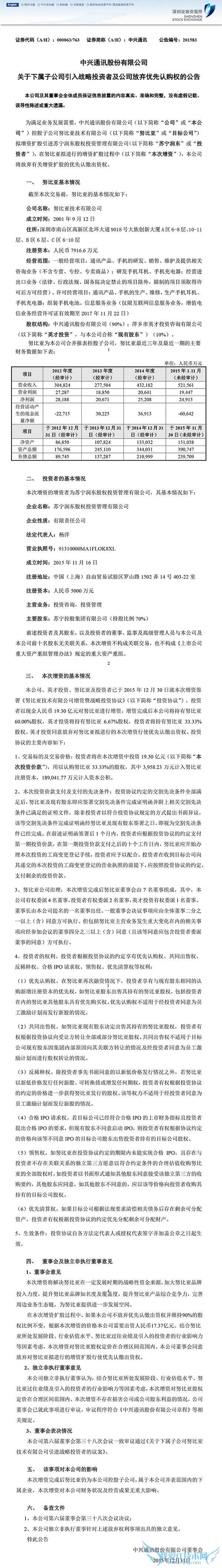 科技讯 12月31日消息,今日,努比亚与苏宁共同发布公告,苏宁宣布19.3亿元投资新三板挂牌公司中兴物联(中兴物联为努比亚全资子公司),占股33.3%,目前努比亚估值约10亿美金(60亿人民币)。