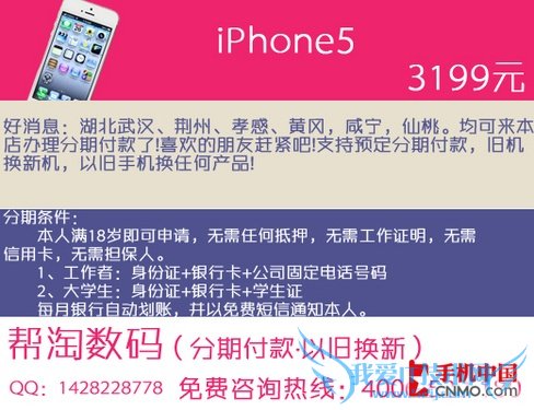 【手机中国武汉iPhone4s报价】苹果iPhone 4S手机采用经典时尚的直板设计,拥有一块3.5英寸的Retina高分辨率显示屏,搭载一颗A5双核处理器,整机稳定流畅,内置800万像素摄像头,支持高清视频录制,性能出色。目前武汉iPhone4s经销商“帮淘数码”售价1799元,喜欢的朋友的朋友可以和商家联系一下。免费销售热线:4006-520-180 联系热线: 15308640032 QQ:1428228778(张朝希) 15342970601 QQ:453122477(徐增光) 店面地址:武汉市洪山区广埠屯长江传媒大厦5楼A1