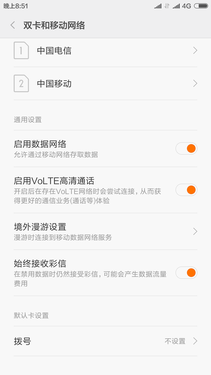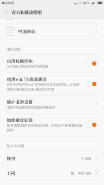 小米手机5支持全网通3.0,通过实测来看,无论是卡槽1还是卡槽2,小米手机5都能正确识别三家运营商的SIM卡,同时也可以进行4G网络数据的软切换而且当主卡使用移动、联通4G时,副卡最高支持联通3G网络语音电话。VoLTE功能也没有缺席,它可以为用户提供更好的通话体验。