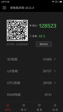 小米手机5依然重视硬件性能,其采用在CES2016以及MWC2016两大展会开启暴走模式的高通骁龙820处理器,搭配LPDDR4 RAM以及UFS2.0机身存储,本次测试的为高配版本,安兔兔跑分可以很轻松的达到13W左右,显而易见,性能还是小米手机一个比较显著的卖点。需要注意的是,标准版也就是1999元的小米手机5,它的CPU和GPU频率都有所降低。