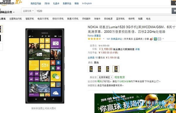 诺基亚1520今日再降,该机显然是再次冲击3K大关的阵势,自然对于消费者来说是非常难得机会,显然在近端时间内,也仅有京东618店庆那时候价格最低。此外该机还搭载了2GB RAM的运行内存,可以使得该机表现更为出彩。目前诺基亚1520在亚马逊最新报价3199元,跌破3K2大关,对其感兴趣的朋友可以关注一下。