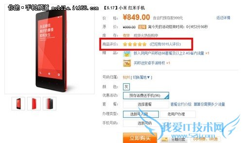 【IT168 浙江行情】红米的热销离不开各位发烧网友的支持。517网购节红米促销价849元,含999元预存话费和2.4G省内流量。