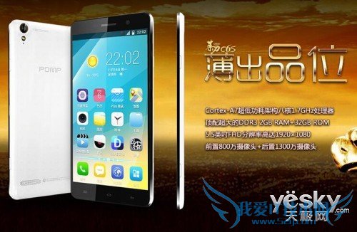 真八核MT6592,自从发布开始就一直成为国产手机厂商争相选用的对象,而千元机行列的新手机,基本都少不了它的身影,然而,很多商家也就只是如此,把一颗八核芯塞进一台旧机器,然后就拿出来造次,或许屏幕和电池会适当扩大一下,但是笨重和过于巨大,让人不免怀疑品牌的诚意。对比起来,POMP推出的菜刀C6S,没有过于花俏的推广,却实实在在地将各个方面都优化一番,加上1588元的超实在价格,性价比非常高。当然口说无凭,我们就从细致的参数方面给大家解说一番!