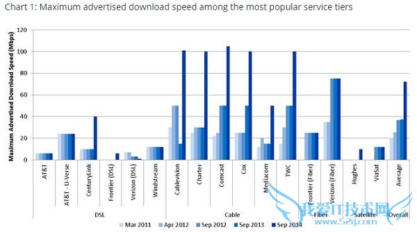 比如在2011年的时候,其标榜的最高下行速率在12-20Mbps之间;而到了2014年的时候,个别ISP已经提供50-105Mbps的速率。