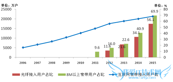 图2006-2015年互联网宽带接入用户发展和高速率用户占比情况