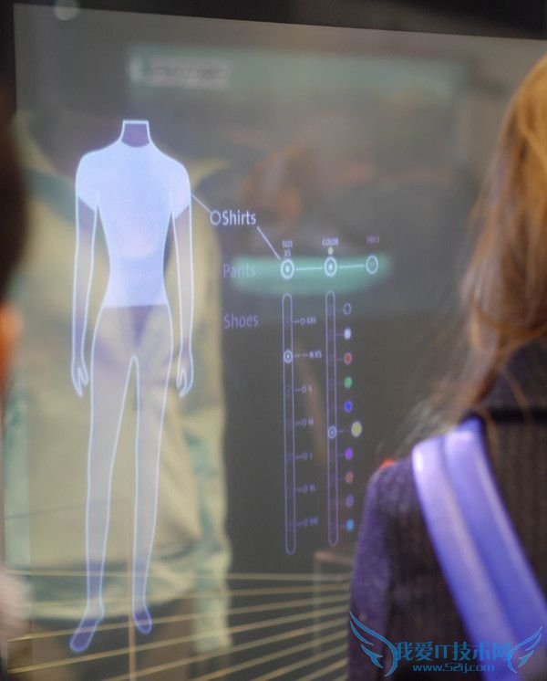 当我们操作用户界面时,机器将会做出相应的反应,至于它的实用性,我们还有待观察,从照片中我们看到,虽然我们可以输入一些数值来更准确挑选衣服,不过,如果能让我们自己的形象出现在屏幕上,更直观看到穿上衣服的效果,那岂不是更完美?不过有一点我们是可以确定的,当你面对这块玻璃完成了购物之后,你还得花费一些时间去清理玻璃上的油迹与灰尘,就像你经常擦拭你的手机屏幕一样。
