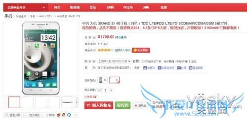 中兴天机白色版京东现货发售 售价1799元