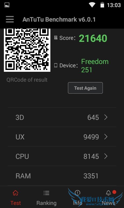 AnTuTu是最流行的CPU、RAM、显示芯片、数据测试软件。在AnTuTu Benchmark v6.0.1中测试总成绩为21640分。