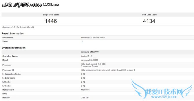 根据最新曝光的跑分显示,单核成绩增加到1446分,这个成绩已经跟三星的Exynos7420接近,至于多核成绩则为4134分。数据还显示该机配有3GB RAM,运行Android 5.1.1系统。根据此前的报道,三星A9将是首款搭载骁龙620的机型,此前的跑分显示骁龙620单核成绩为1325分,多核成绩为4461分。相比之下,骁龙620的单核心性能有所提升,多核心性能反倒有所下降,考虑到该机仍然处于调试期,该机的最终性能应该会更加强劲。