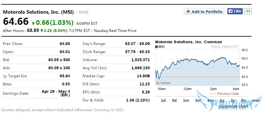 受此消息推动,摩托罗拉系统股价周五在盘后交易中一度大涨8.3%至70美元。摩托罗拉系统周五的收盘价为64.66美元。