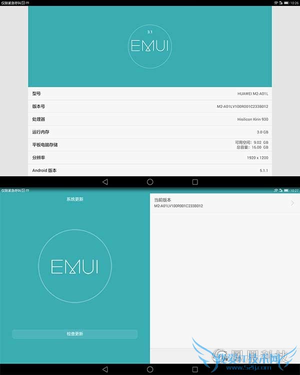 在系统方面,华为揽阅M2 10.0采用了华为经典的EMUI界面,其版本号为3.1,而其底层系统为Android 5.1.1版本,对于这样一个组合来说已经是老朋友了,流畅度等等就不必细说了,但是我们看到了华为针对于大尺寸平板的一些专门的适配,在细节方面还是给我留下了比较好的印象。