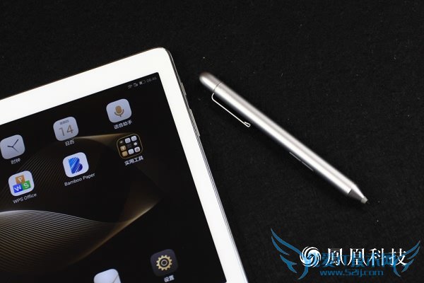 另一方面,华为揽阅M2 10.0还有一个非常有特点的地方就是该机拥有一个专门的HUAWEI M-Pen,这是一杆主动式电容笔,这杆HUAWEI M-Pen采用了金属材质,笔身采用了哑光喷漆处理,长度相比普通的中性笔稍短一些,不过手感和重量都控制的不错。这杆HUAWEI M-Pen采用了Wacom主动方案,支持2048级压感,精度为0.5mm,响应速度则低于25毫秒,其笔尖采用了FELT材料,1.5mm的笔尖在书写质感上能还原真实书写时的体验。