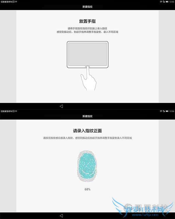 在指纹体验方面,华为揽阅M2 10.0把指纹传感器做成了类似Home 键的设计,它并不能通过按压实现Home 键功能,但是长按的效果是相同的,并且还能通过左滑实现返回,右滑则是多任务界面,可以替代虚拟按键。在设置好密码之后,我们可以在设置菜单中看到“指纹”的选项,点开之后就可进行录入,可能是为了照顾平板更多的持握方式,录入的次数比较多,录入的比较精细。