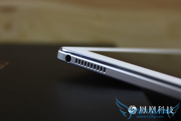 在细节方面,华为揽阅M2 10.0的机身顶部中间有一个降噪麦克风,最边缘的位置是一个3.5mm的标准耳机插孔,机身右侧拥有一个电源键和音量键,电源键采用了突出的设计方便用户盲操。在机身左侧,我们可以看到华为揽阅M2 10.0将microUSB接口放在了这里,虽然看起来有些怪异,但是从实际使用来说平板的电源放置在这一侧还是比较照顾用户体验的。