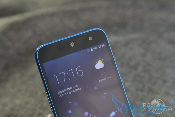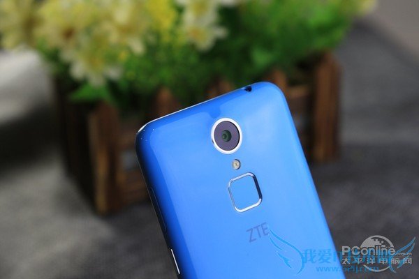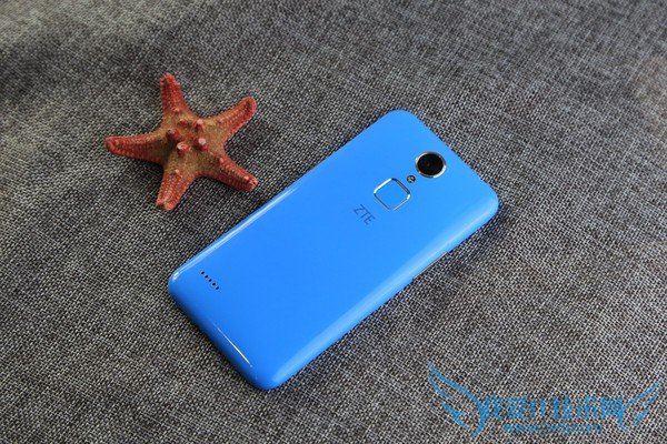 中兴Blade A1使用了经典的蓝色小圆圈设计,在无操作的情况下依旧显示蓝色,与机身色彩非常搭配。听筒部分少见的使用了圆形设计,与小圆圈大小相近,相互映衬。Blade A1使用了非常经典的聚碳酸酯作为机身材质,虽然因为成本原因没有使用全金属机身,可是聚碳酸酯带来的手感和质感也非常的优秀。中兴Blade A1的指纹模放置在了后背,周围有一圈金属环衬托,可以被按下,进而触发截图、锁屏、开闪光灯等功能,并不仅仅局限于指纹识别。