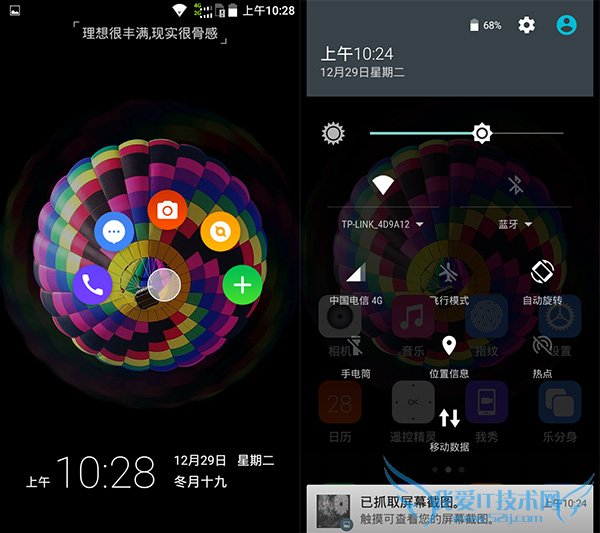 锁屏界面可快速进入一些功能