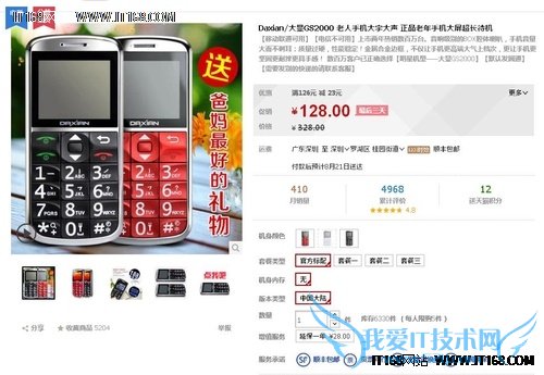 【IT168 行情】大显GST2000上市两年热销几百万台依然火爆热销的经典老人手机,拥有太多让您选择的理由。1500mAh的超大容量电池,超过90天的极限待机时间;音响级别的BOX腔体喇叭,手机音量大而不刺耳;质量过硬,性能稳定,几百万台千分之一的超低返修率!金属合金边框,不仅让手机更高端大气上档次,更让手机更坚固更耐摔更具手感! 目前,商家雅马亚虎,天猫店铺老人机大显GS2000再爆史上最低价,满126元减23元,实际售价105元,很优惠的哦!最后三天过期不候。点击购买