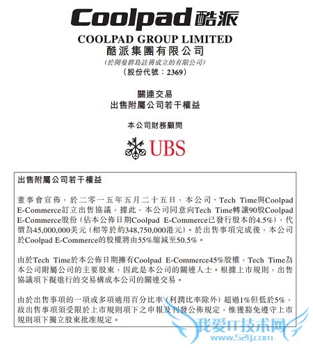 公告称,出售事项让酷派、Tech Time与Coolpad E-Commerce达到更平衡更强大的合作。酷派集团拟运用出售事项所收取的代价作为一般营运资金。于出售事项完成后,Coolpad E-Commercee将仍然为酷派集团的附属公司,并将成为相关会计准则项下合营企业。酷派初步,预期从出售事项录得收益逾3亿美元。
