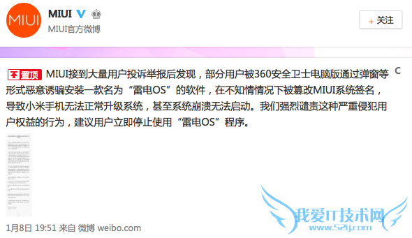 这个周末,注定又是一个不平静的周末。1月8日晚间,小米的一则公告,把一款名不见经传的“雷电OS”推到了风口浪尖。不妨慢慢刨析下其中缘由。事情最开始,小米宣布其应用商店全线下架360软件,原因是小米认为360恶意诱骗安装名为“雷电OS”的程序,并在用户并不知情的情况下静默执行Root刷机行为。