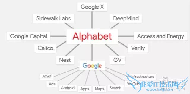 2015年谷歌从挤满了各种项目的单个公司变身成了Berkshire Hathaway风格的航母公司,取名为Alphabet。那么Alphabet究竟都包含了哪些公司呢?谷歌内部就包含了搜索,广告,地图,APP,YouTube,Android和相关技术的基础设施。而而Calico, Nest, Google Fiber, Google风投,Google资本和Google X 都是Alphabet的子公司。
