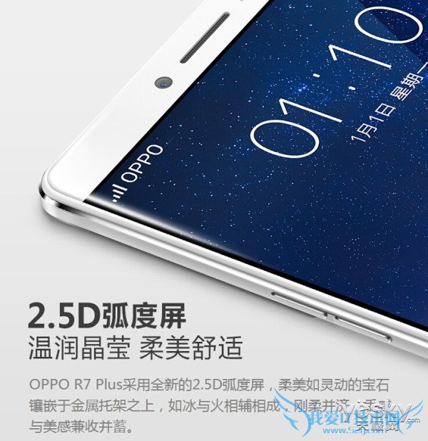 OPPO R7 Plus搭载2.5D弧度屏,让手指左右滑动不再局限于平面,弧度滑动更加符合自然规律。机身背面借鉴经典小提琴的弧线设计,首创“提琴雅弧”,同时传承OPPO经典的“线体主义”设计语言,优雅中兼顾手感,简约中蕴藏精妙。2.5D弧度屏与“提琴雅弧”背壳两者结合,打造出最为优雅细腻的OPPO R7 Plus。