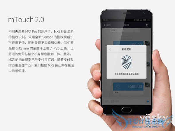 魅族MX5采用新一代64位真八核处理器Helio X10 Turbo,8颗主频高达2.2GHz的A53 架构核心,辅以3GB运行内存,配合先进的64位Flyme4.5系统,可让数据处理更为迅速,视频播放画面顺滑流畅。魅族MX5使用全新升级的「mTouch 2.0」,配合全新的识别算法,整个解锁过程仅需0.48秒。「mTouch 2.0」不但打通了Flyme自有的账户支付体系,而且已接入国内最大的支付平台「支付宝钱包」,现在可直接使用「mTouch 2.0」加密的「mPay」支付生态,无需多次输入密码。