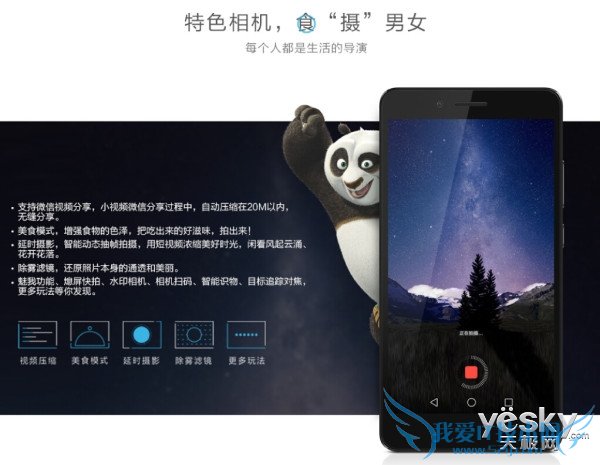 荣耀畅玩5X搭载了黑屏解锁只需0.5秒的FPC第2代无金属环按压式指纹识别方案。拍照方面,荣耀畅玩5X搭载索尼1300万像素堆栈式传感器相机,F2.0大光圈,28mm广角,5P镜头,蓝玻璃IR滤光片。前置则为三星/OV 500万像素摄像头,22mm广角,清晰取景范围可达88度,支持全景自拍,软件方面则由是智像3.0专业图像处理引擎支持。除此之外,其还有美食模式、微信视频分享、延时摄影、魅我功能、熄屏快拍等等。