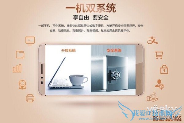 锋尚MAX支持指纹识别,并且可以通过指纹进行双系统切换。一部手机两个账号,互相不干扰;在安全空间中使用各种金融软件支付,所有的金融App下载源均是通过官方安全认证的纯净版,完全杜绝第三方软件侵入,保障资金信息安全。封闭的安全系统使得用户可在以放心安心的进行股票理财,无忧无虑地进行安全支付等。