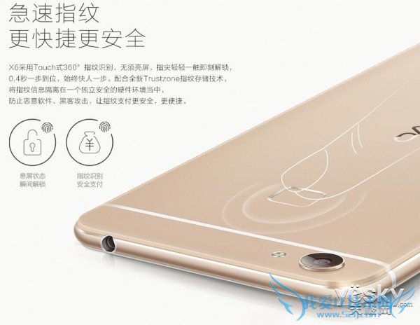 vivo X6Plus搭载了熄屏解锁仅0.4秒、亮屏解锁仅0.2秒的行业最快360度极速按压式指纹识别,并采用Trustzone技术和vivo独有的TEE可信赖支付环境,让指纹支付变得更加安全,所以够快才畅快vivo X6&X6Plus不仅支持支付宝指纹支付,还将是安卓平台上全球首款支持微信指纹认证官方安全标准的智能手机。