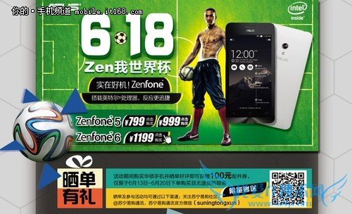 【IT168行情】6月世界杯、父亲节双双驾到,男人们真正过上了大节。父亲节看球赛,大屏手机才够爽,拥有IPS视网膜高清大屏和媲美8核性能的华硕ZenFone智能手机,已在苏宁易购上架销售,5英寸的ZenFone5和6英寸的ZenFone6,799元、999元、1199元多款价位高低配一应俱全,现货售卖随意挑选!即日起至6月20日,在苏宁易购成功购买华硕ZenFone并参与晒单活动,还可获得100元购物券,还不快来挑男人节礼物?