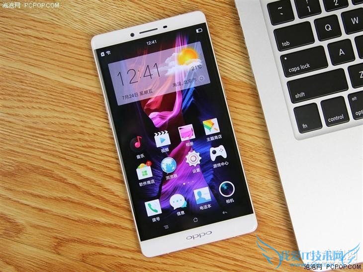 就整体设计风格而言,OPPO R7与OPPO R7 Plus可谓是一脉相承,并且与OPPO R5交辉相应。当然OPPO R7 Plus在细节设计上,显得更为游刃有余,毕竟大屏幕尺寸在整体机身设计有了更大的空间和余地,加上OPPO手机在拍照、美颜方面的一贯优势,在同级产品中的竞争力着实不容小觑。该机采用6英寸的2.5D弧度屏,分辨率为1080p,材质为AMOLED,具备超高对比度及省电的特性。金属一体成型机身,采用弧度后壳设计,在保留了超大屏幕带来的视觉冲击与体验的同时,兼备了舒适的手感,使其单手握持也不会感到突兀与生硬。