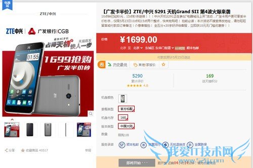 中兴天机Grand SⅡ LTE今日半价秒杀!(来源于天猫电器城)