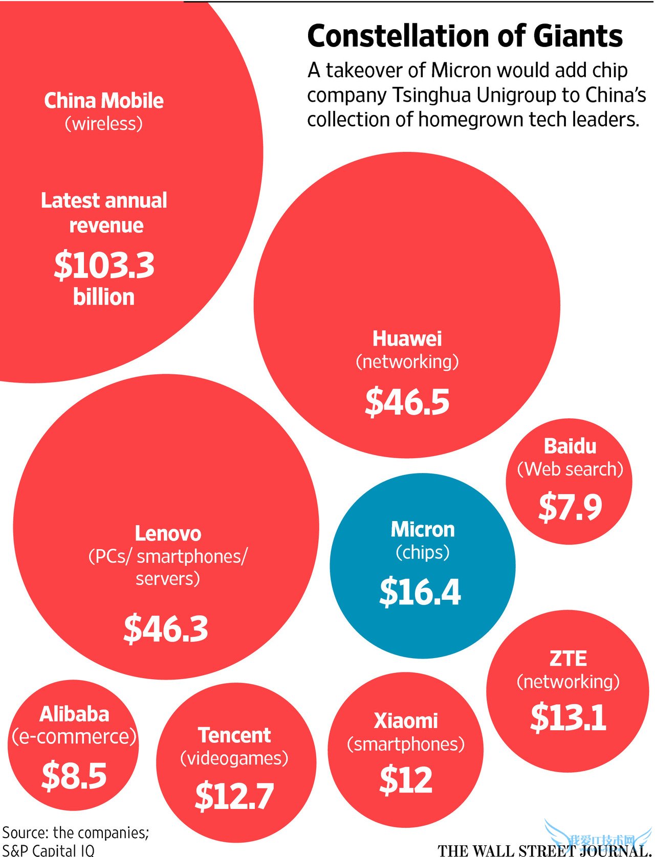 科技讯 北京时间7月15日消息,《华尔街日报》今天刊文称,中国紫光集团有限公司(以下简称“紫光”)提议以230亿美元收购芯片巨头美光科技(以下简称“美光”),表明中国不满足于仅仅组装电子产品,希望向科技产业上游迈进,成为核心元器件生产强国,也彰显了中国在科技领域的远大志向。